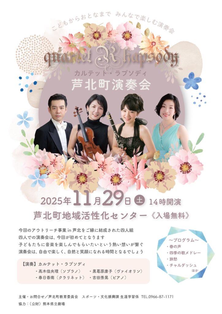 この度芦北町教育委員会の皆さま、熊本県立劇場アウトリーチ事業の皆さまよりご依頼いただき素敵なコンサートに出演させていただけることになりました✨
